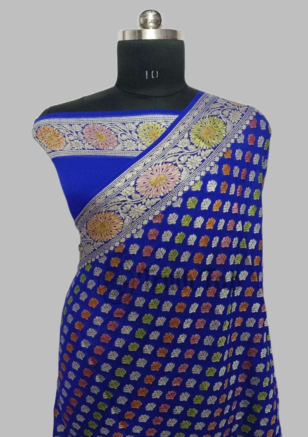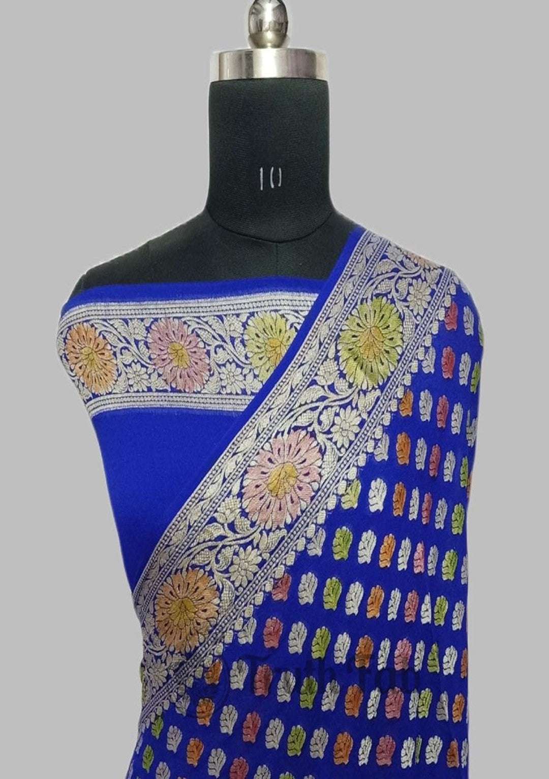 Blue Color Pure Banarasi Handloom Chiffon Saree