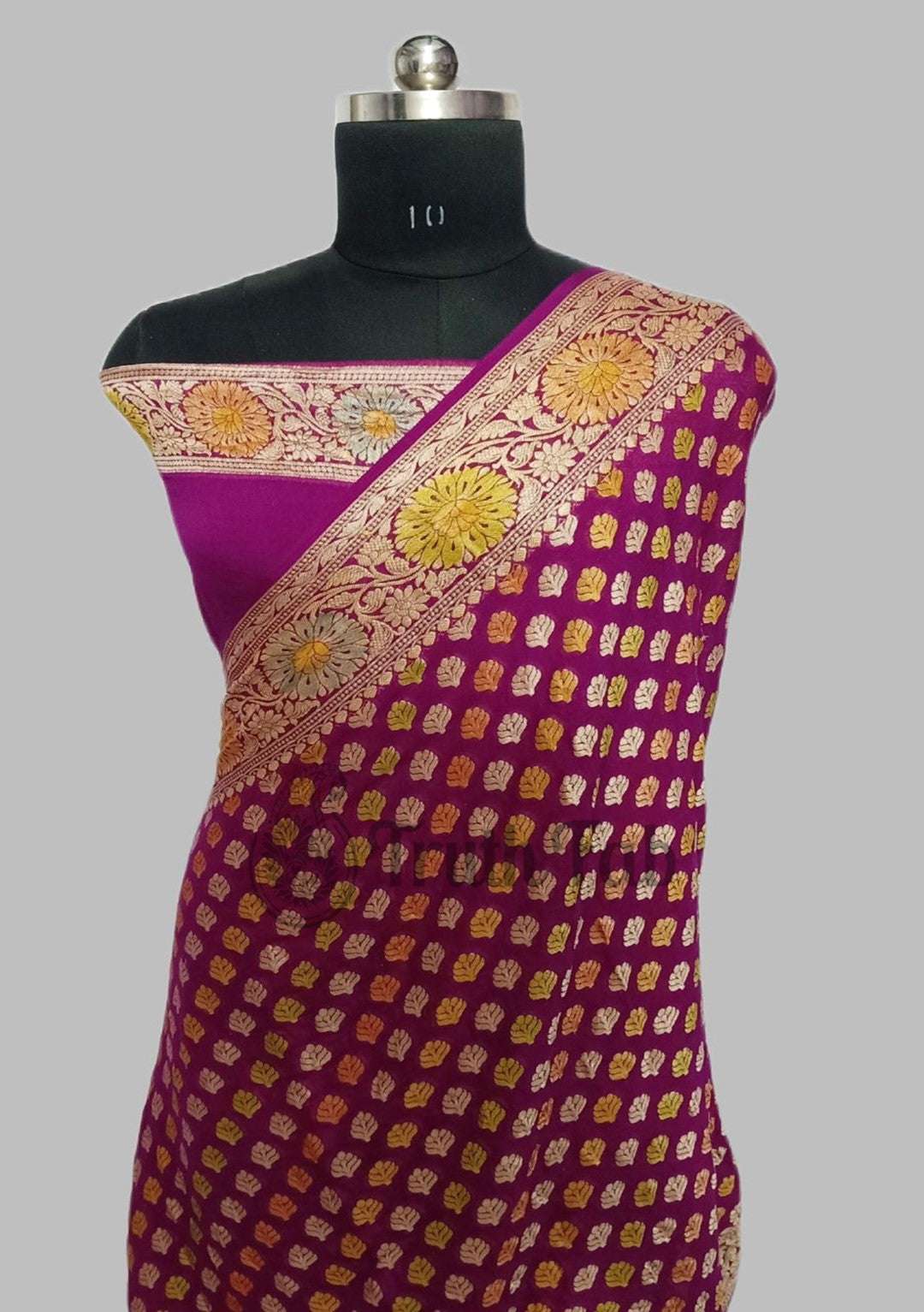 Cardinal Purple Pure Banarasi Handloom Chiffon Saree