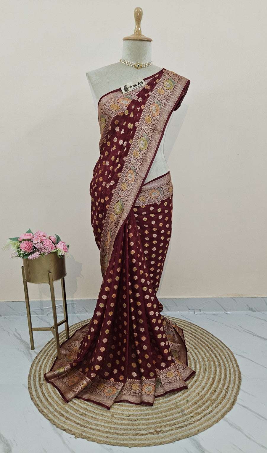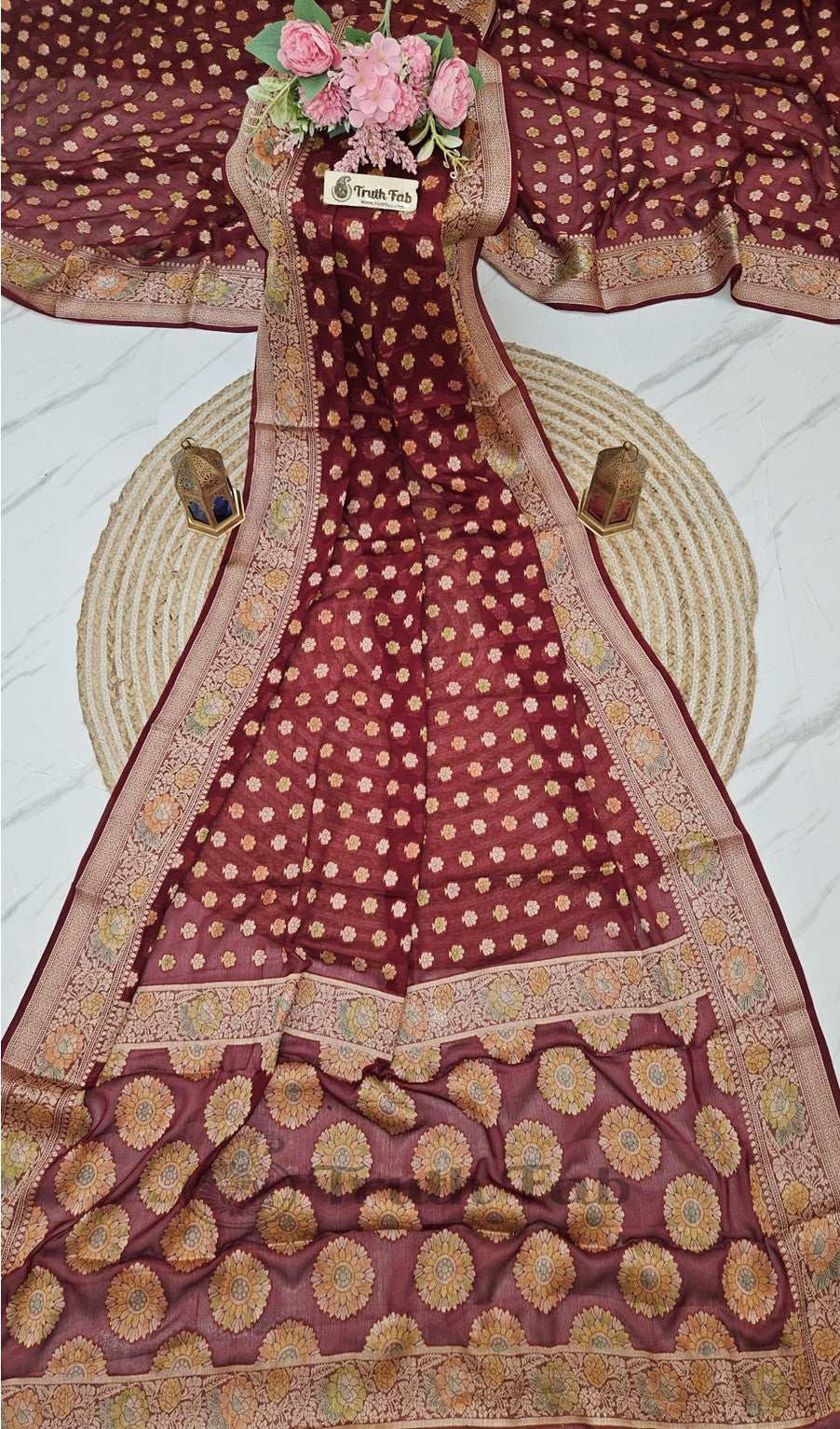 Deep Maroon Pure Banarasi Handloom Chiffon Saree