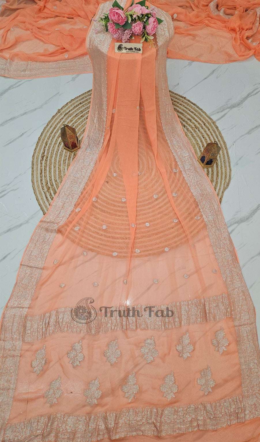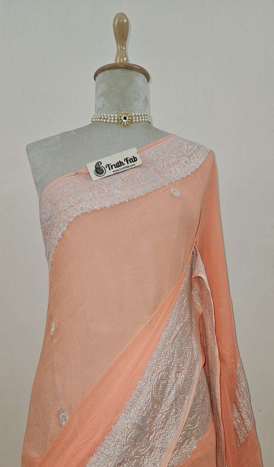 Light Orange Pure Banarasi Handloom Khaddi Chiffon Saree