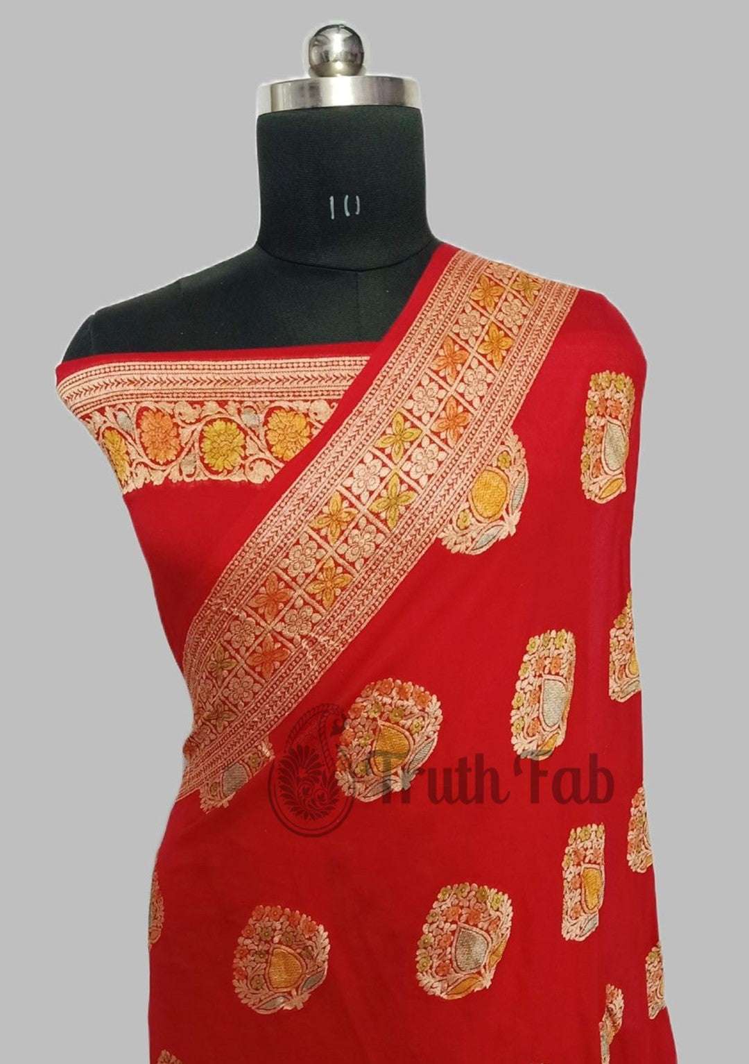 Red Color Pure Banarasi Handloom Chiffon Saree