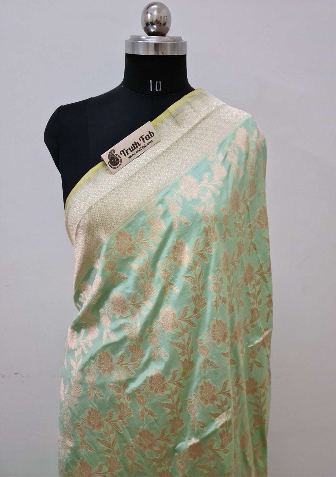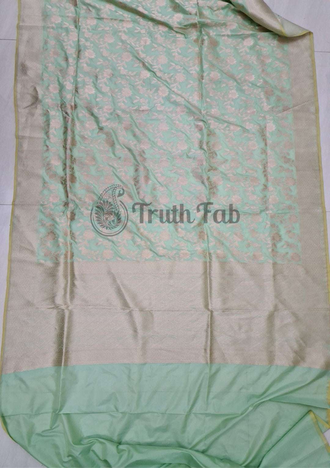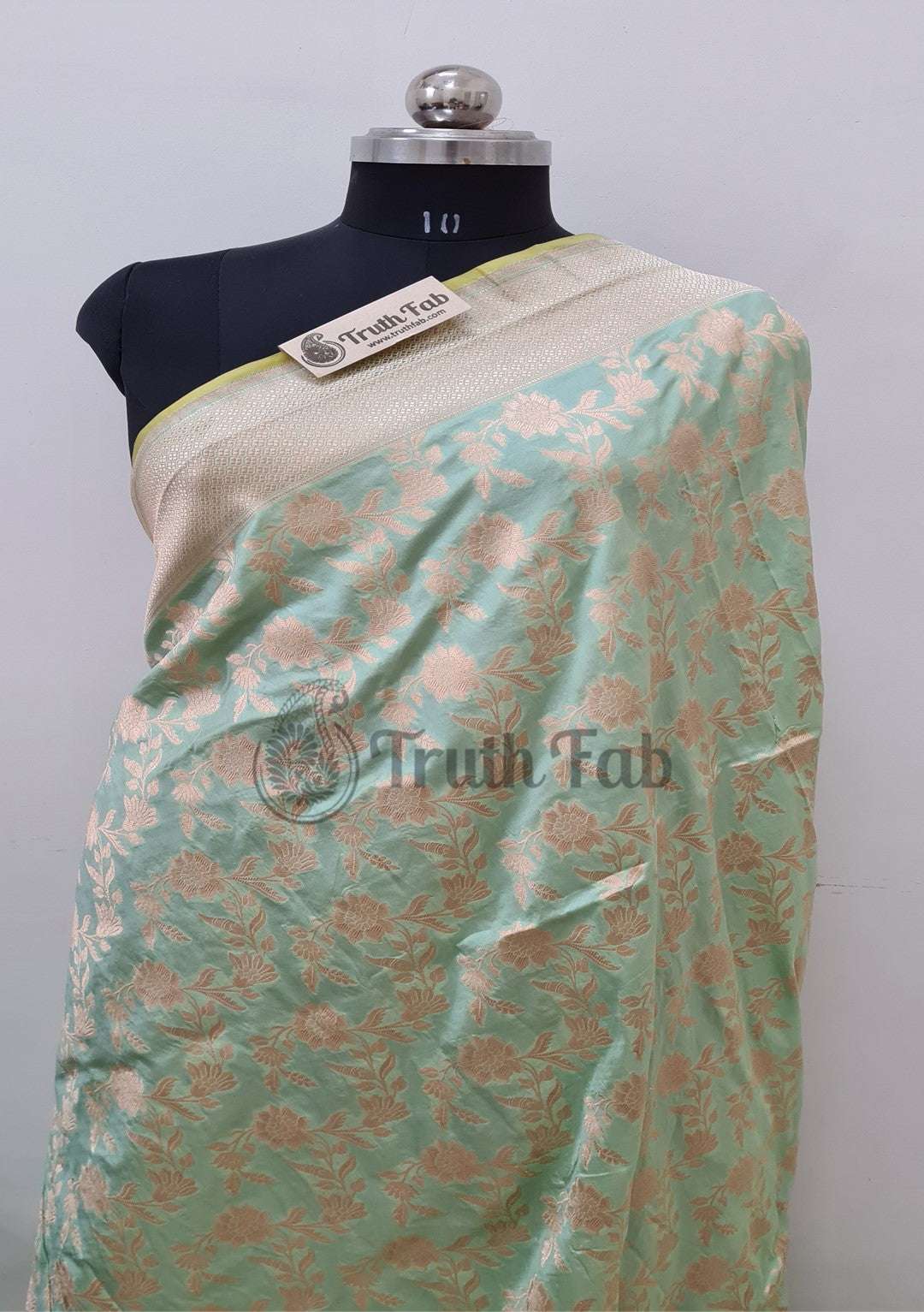 Tea Green Color Pure Banarasi Handloom Katan Silk Saree- All Over Jaal Work