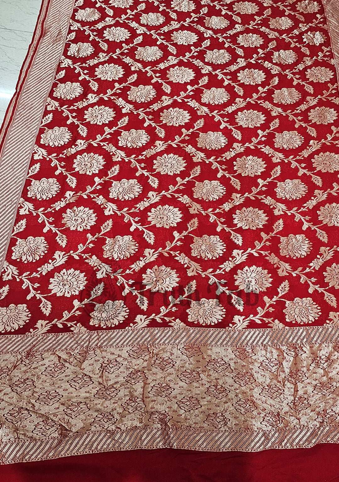 Blood Red Pure Banarasi Handloom Khaddi Georgette Saree- Water Zari