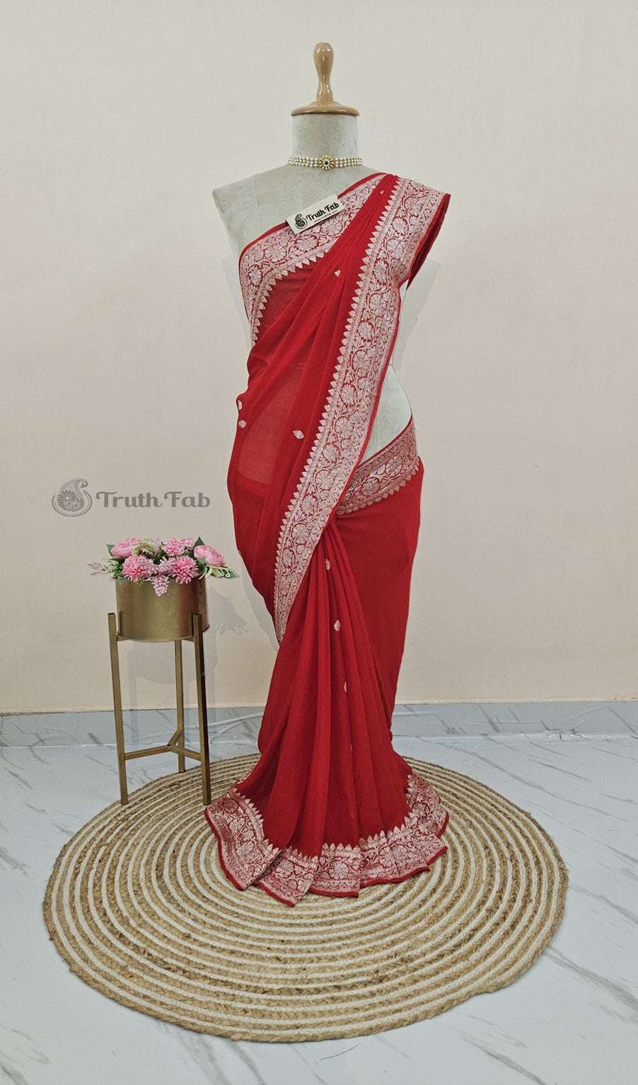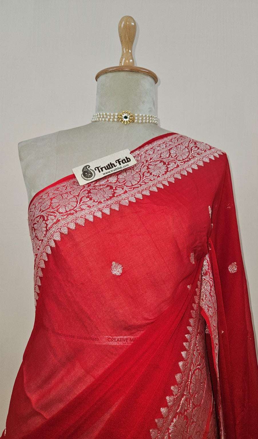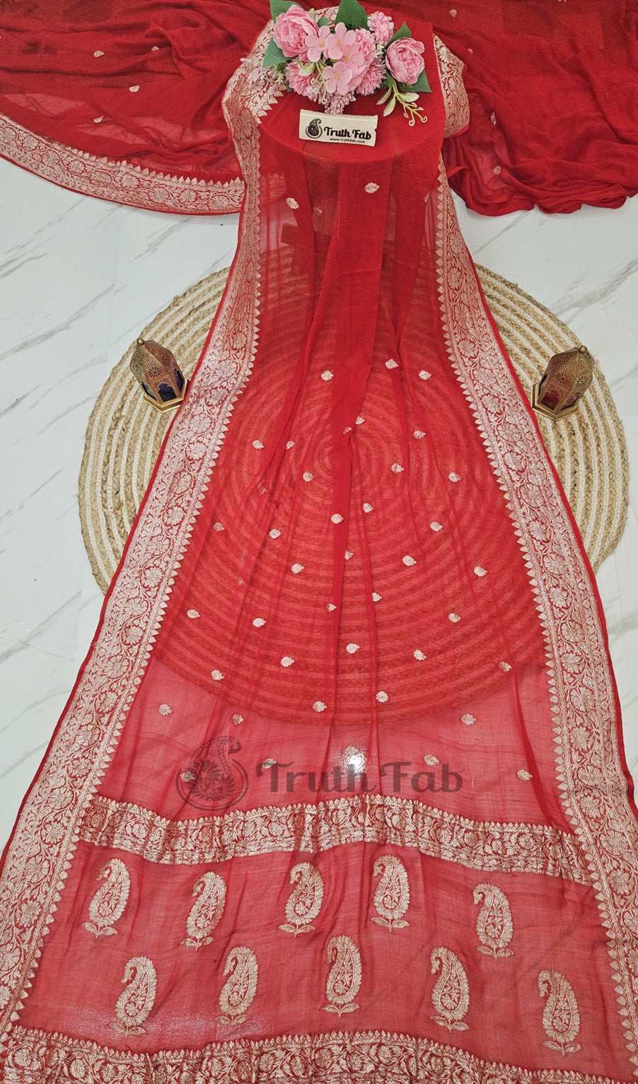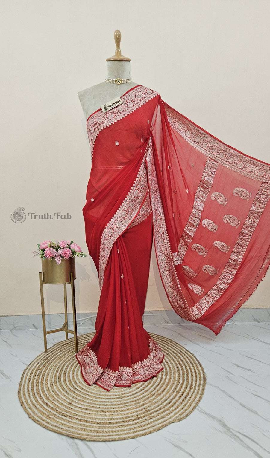 Chilli Red Pure Banarasi Handloom Chiffon Saree