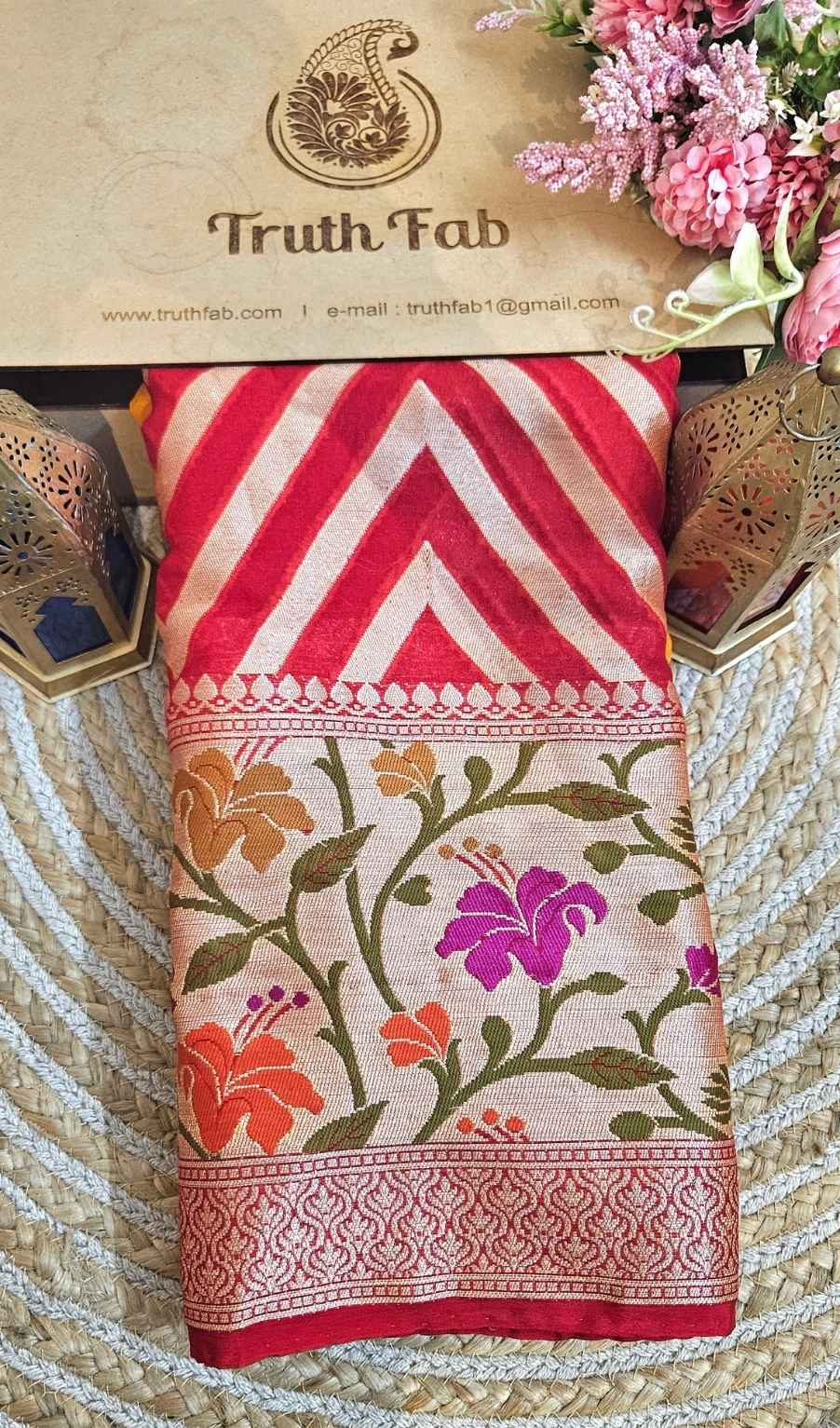 Design Detail: Pure Handloom chiffon Banarasi Saree Weaving a permanent handloom. The elaborate and laborious technique involves hand-weaving each separately. This takes longer on the handloom but creates a more robust pattern, which stands on the fabric.