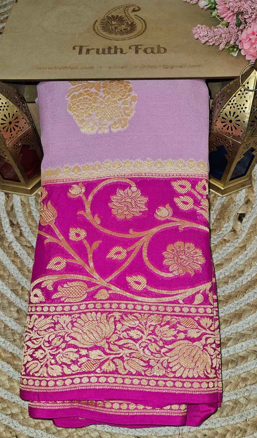 Design Detail: Pure Handloom chiffon Banarasi Saree Weaving a permanent handloom. The elaborate and laborious technique involves hand-weaving each separately. This takes longer on the handloom but creates a more robust pattern which stands on the fabric.