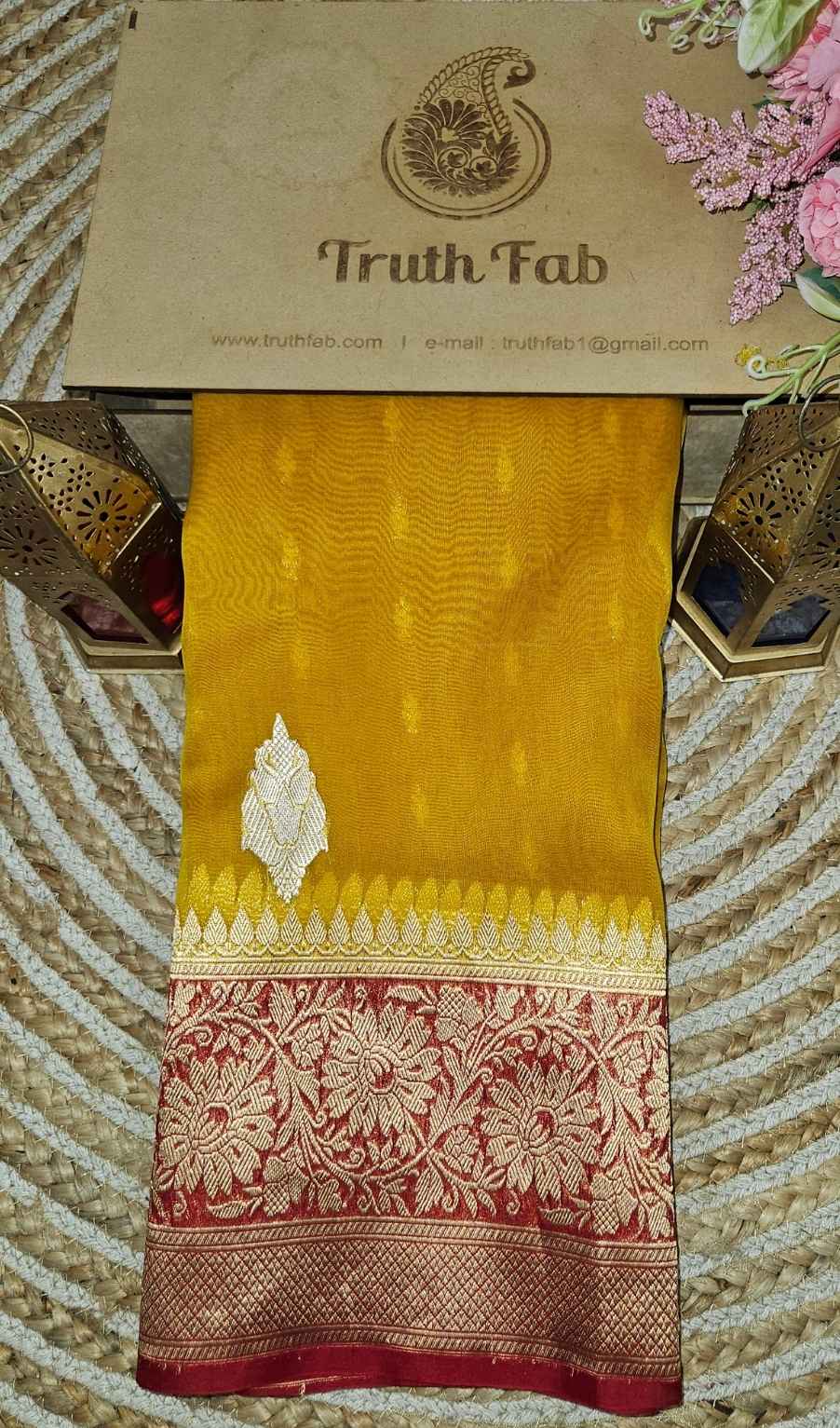 Mimosa Yellow Pure Banarasi Handloom Kora Silk Saree