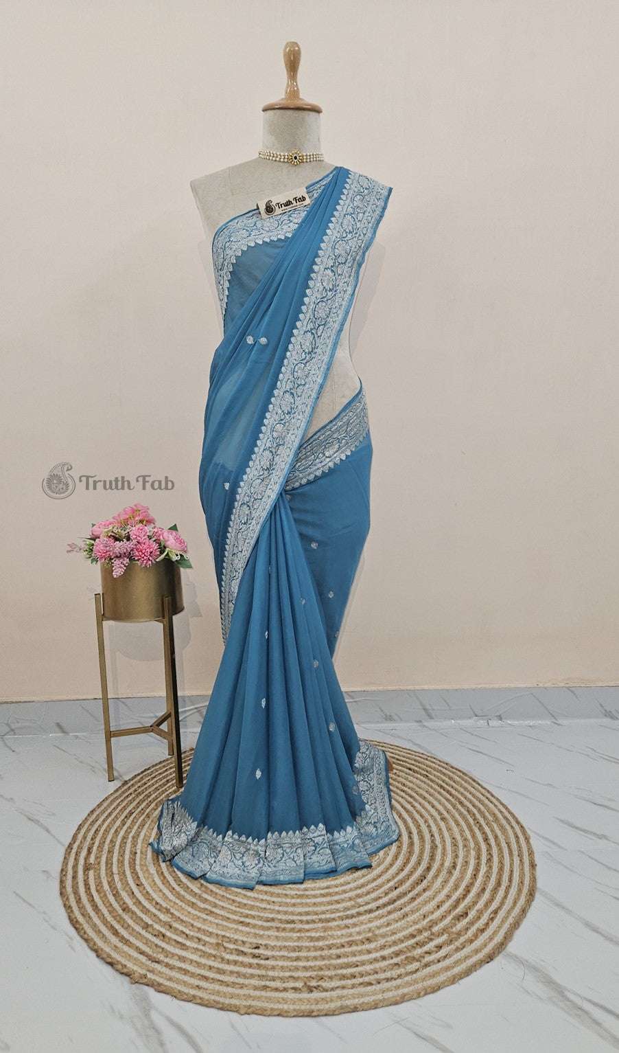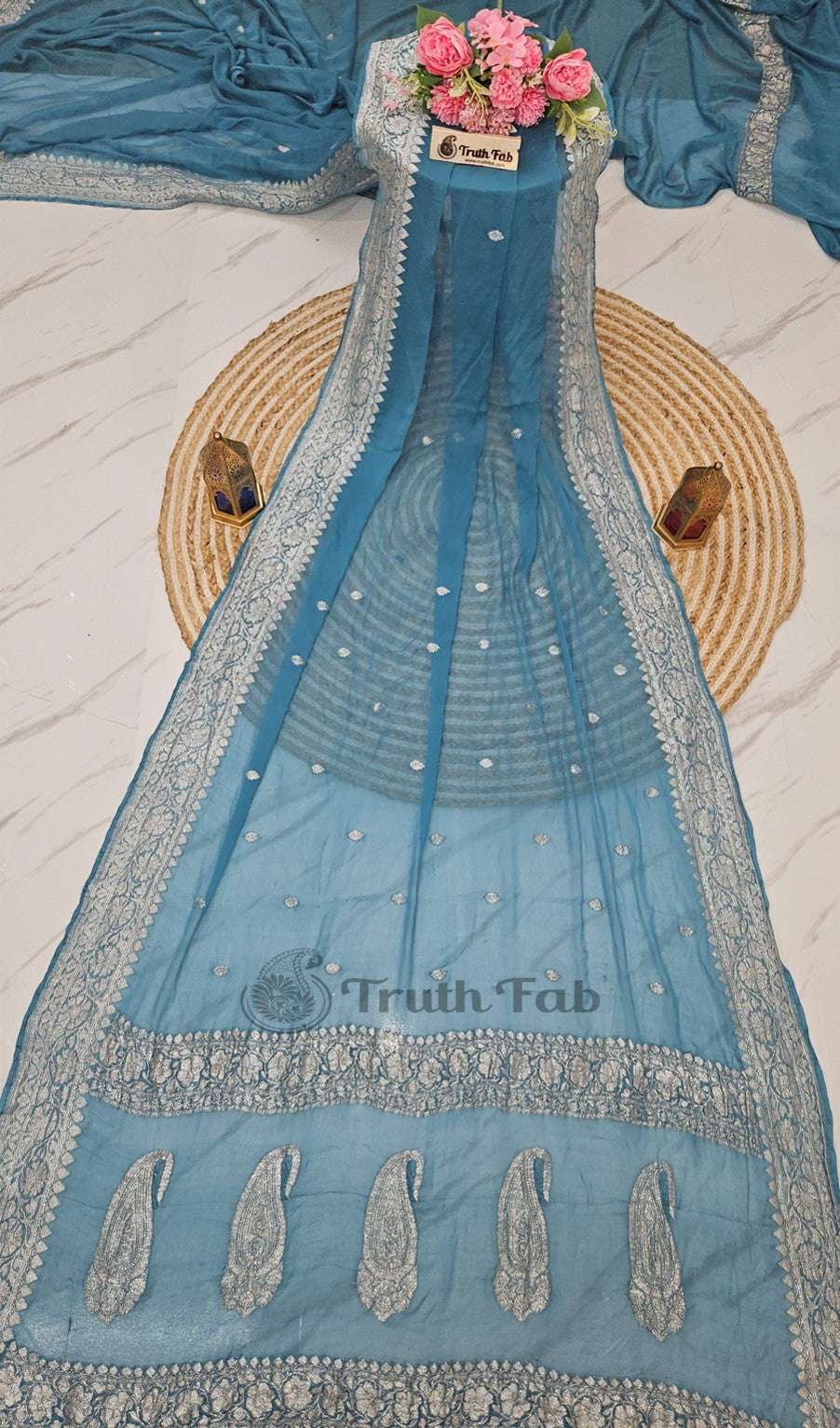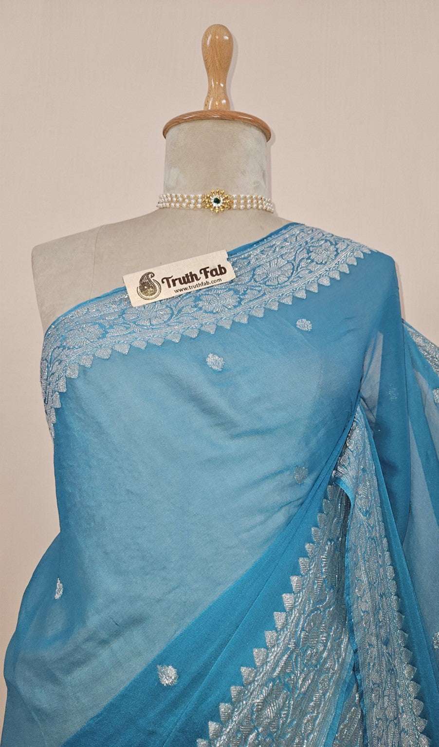 Azure Blue Pure Banarasi Handloom Chiffon Saree