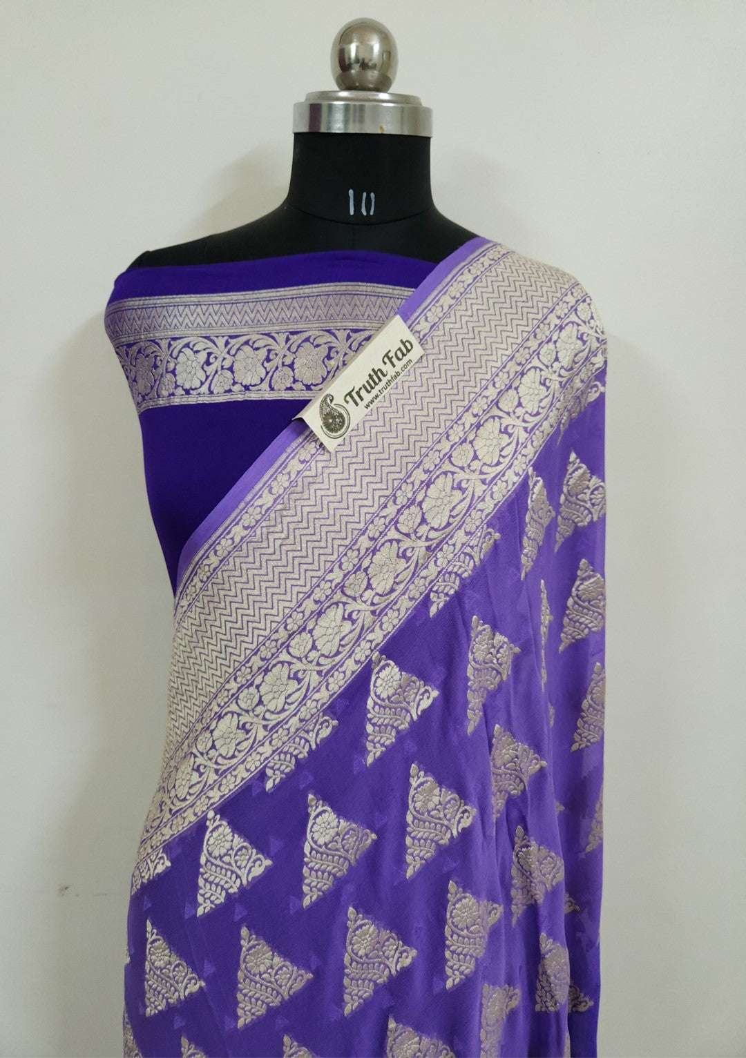 Purple Pure Banarasi Handloom Khaddi Georgette Saree- Water Zari