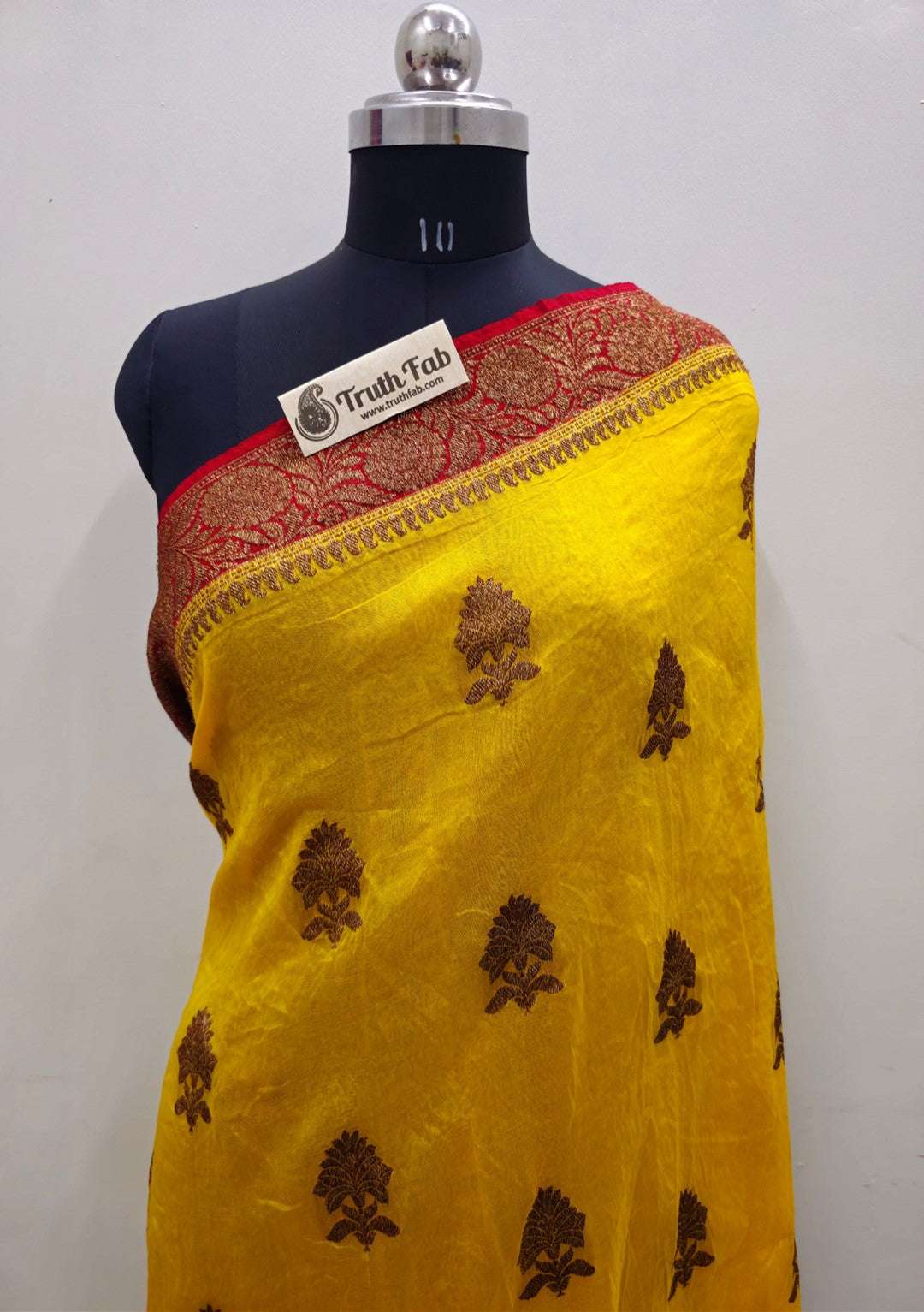 Yellow Pure Banarasi Handloom Kora Silk Saree- Antique Zari
