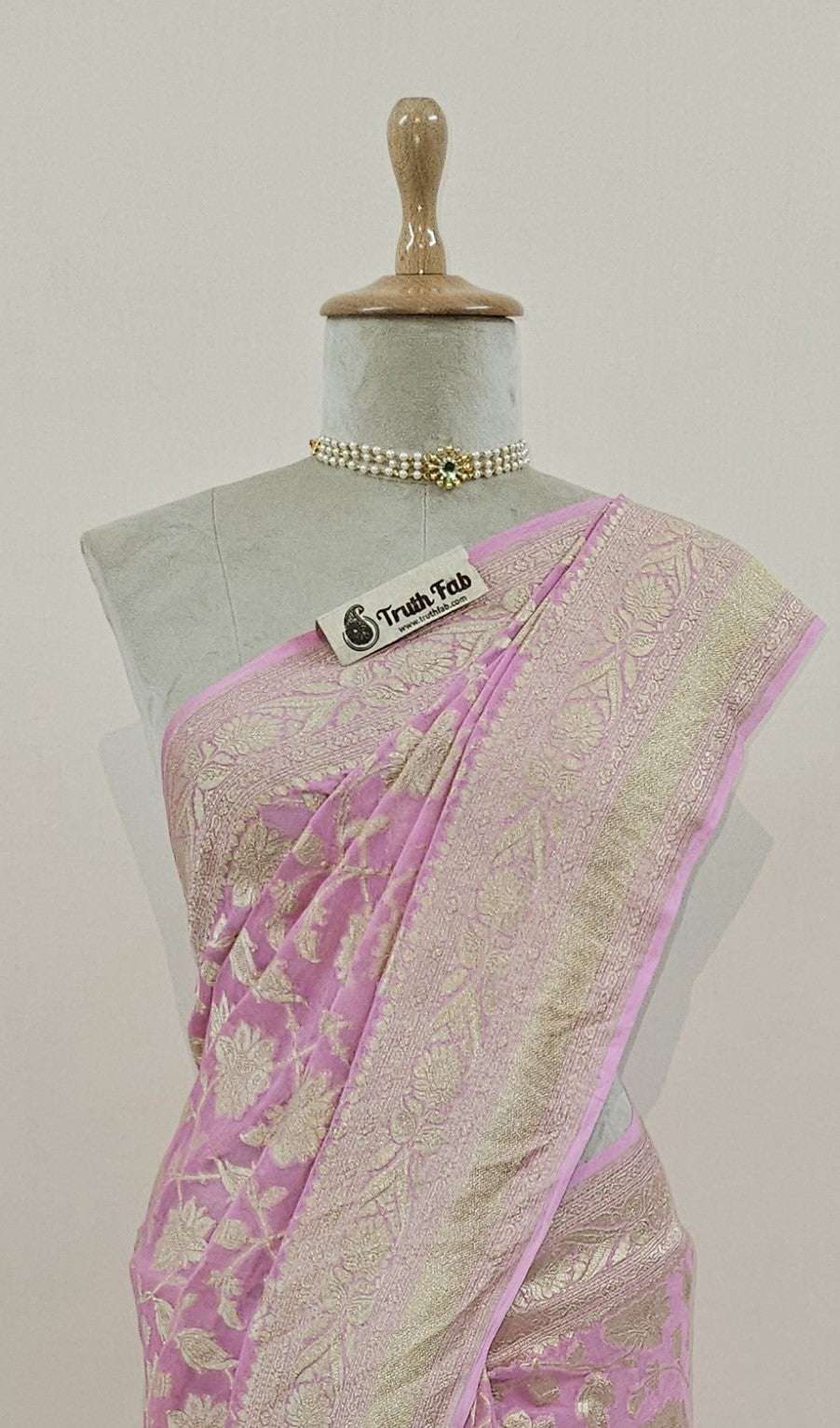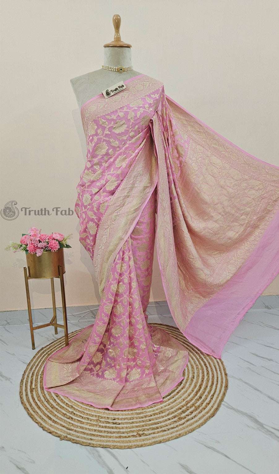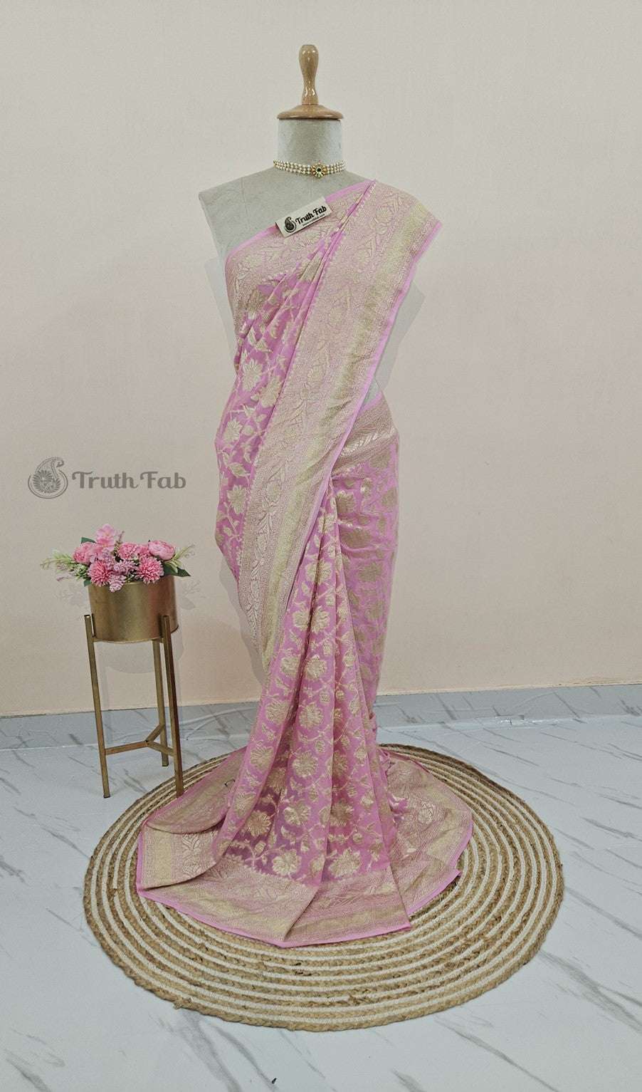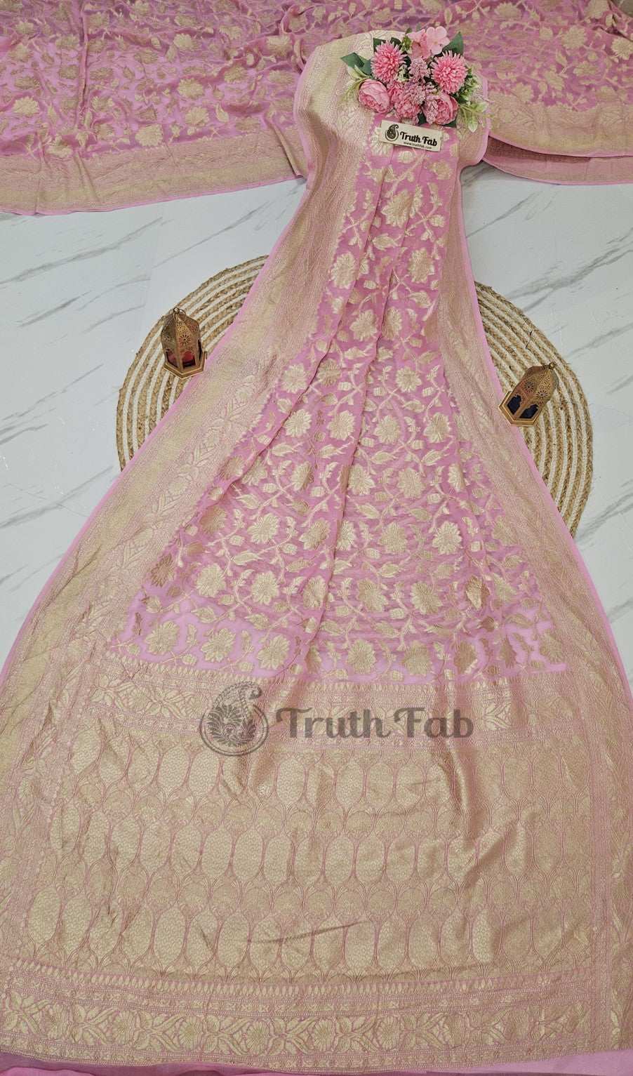 Baby Pink Pure Banarasi Handloom Khaddi Georgette Saree