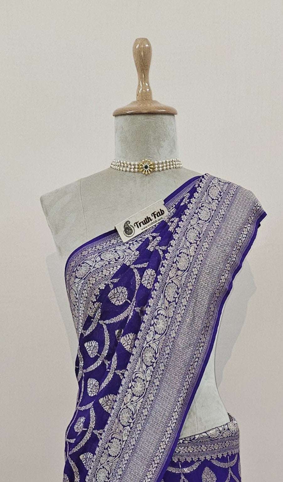 Berry Blue Pure Banarasi Handloom Khaddi Georgette Saree- Water Zari