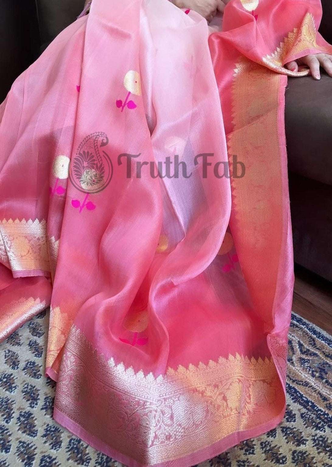 2D Shade Pure Banarasi Handloom Kora Silk Meenakari Saree