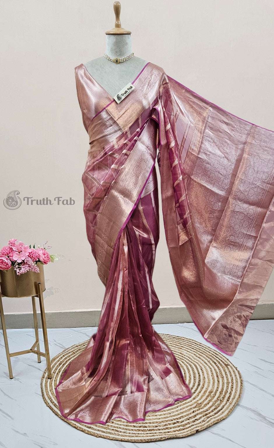 Mulbery Violet Color Pure Banarasi Tissue Silk Saree
