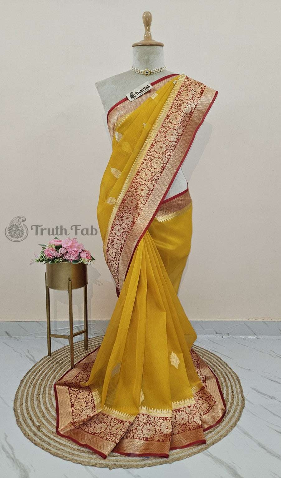 Mimosa Yellow Pure Banarasi Handloom Kora Silk Saree