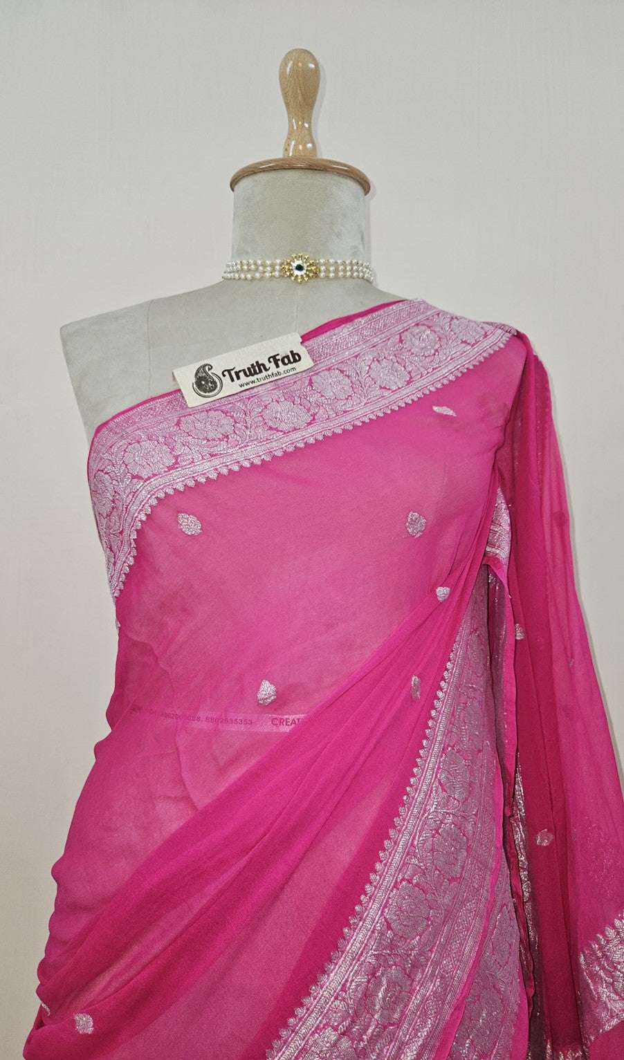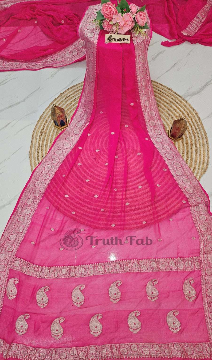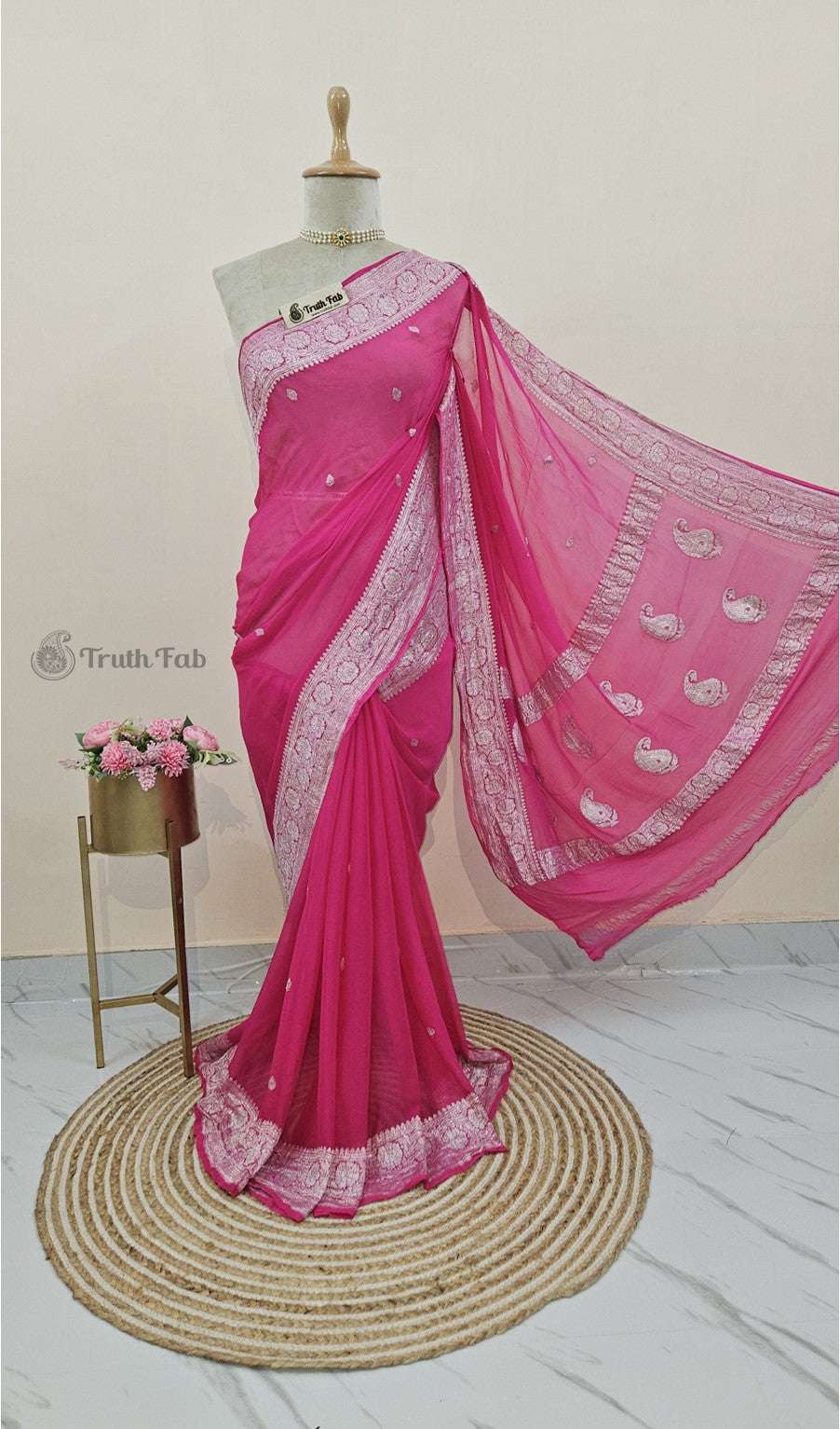 Bright Pink Pure Banarasi Handloom Chiffon Saree