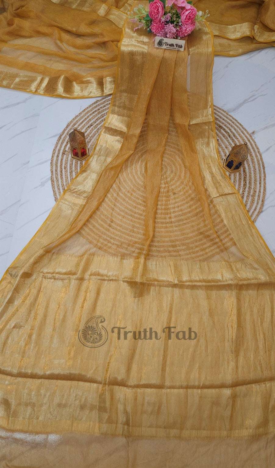 Tuscan Sun Color Pure Banarasi Handloom Crush Tissue Silk Saree