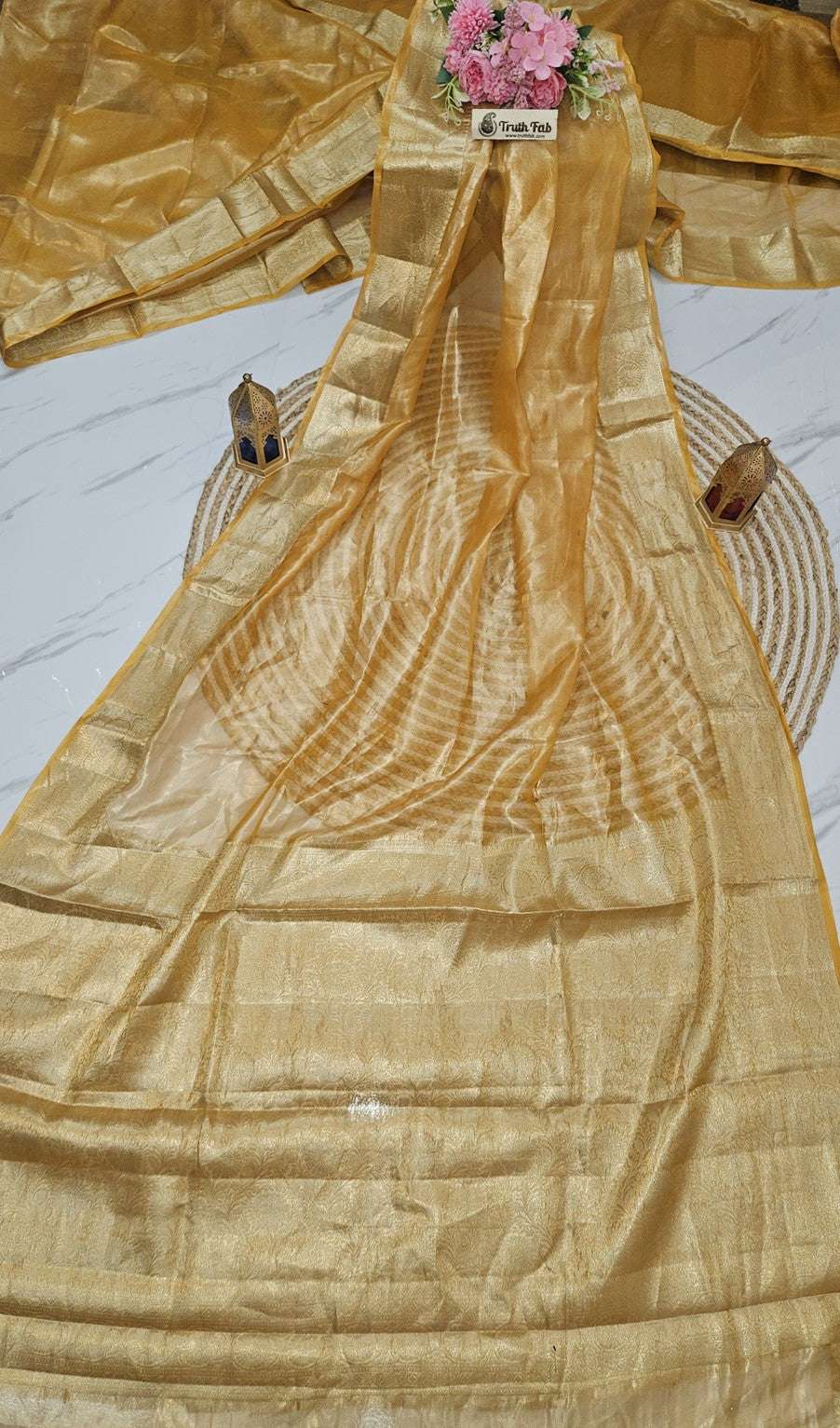 Mustard Color Pure Banarasi Handloom Tissue Silk Saree