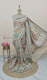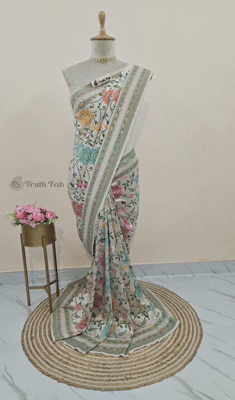 Off White Pure Banarasi Handloom Tussar Georgette Brocade Saree