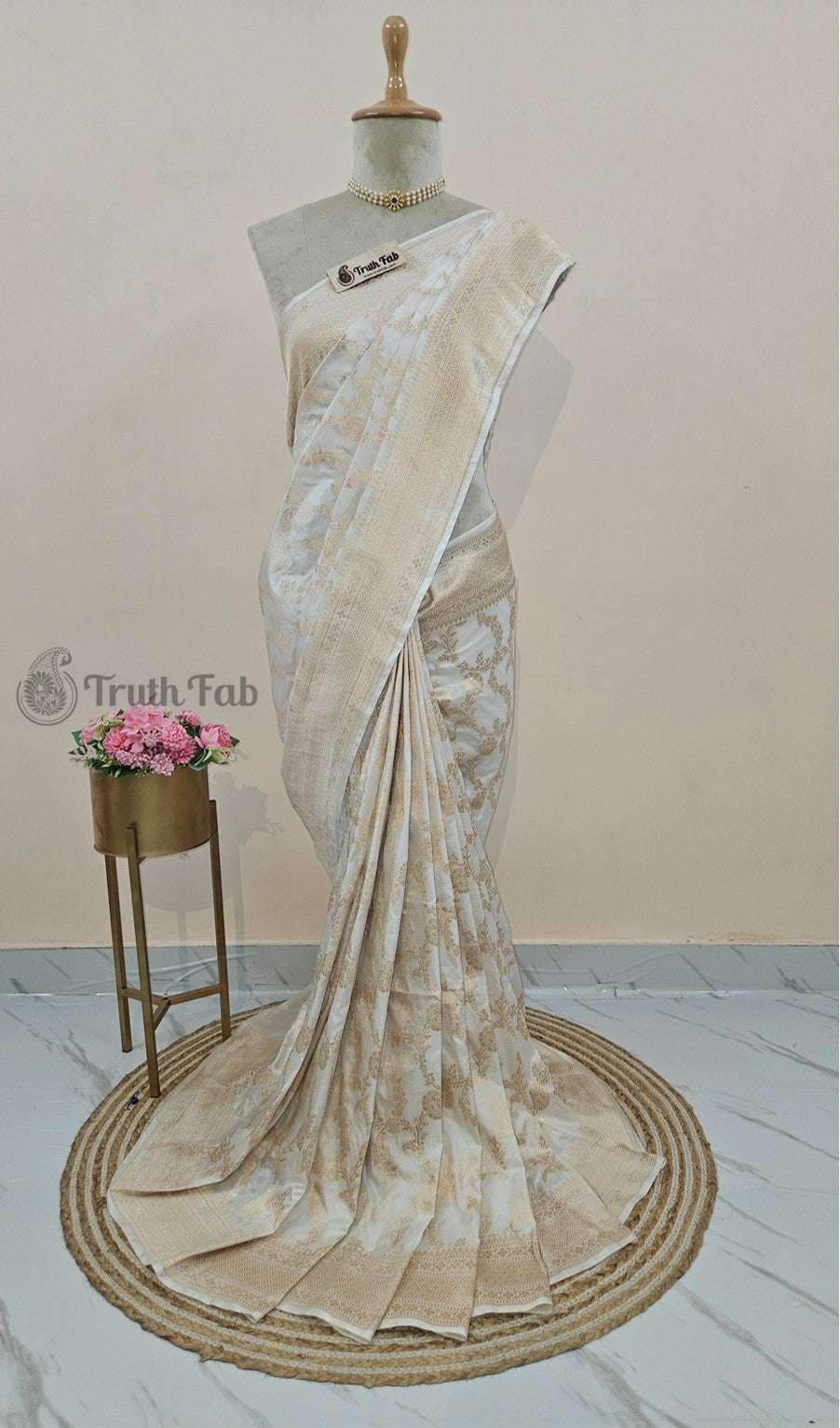 White Color Pure Banarasi Handloom Katan Silk Saree