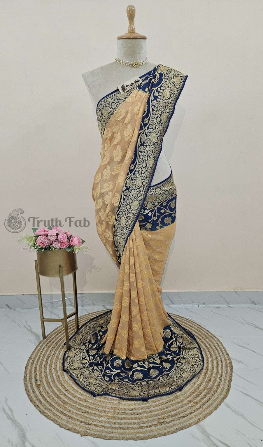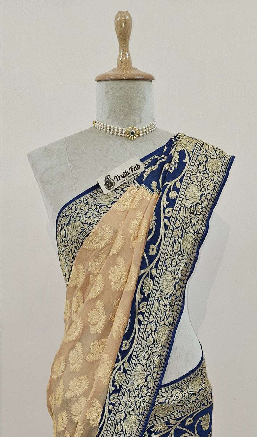 2D Shade Pure Banarasi Handloom Khaddi Chiffon Gold Zari Design Saree