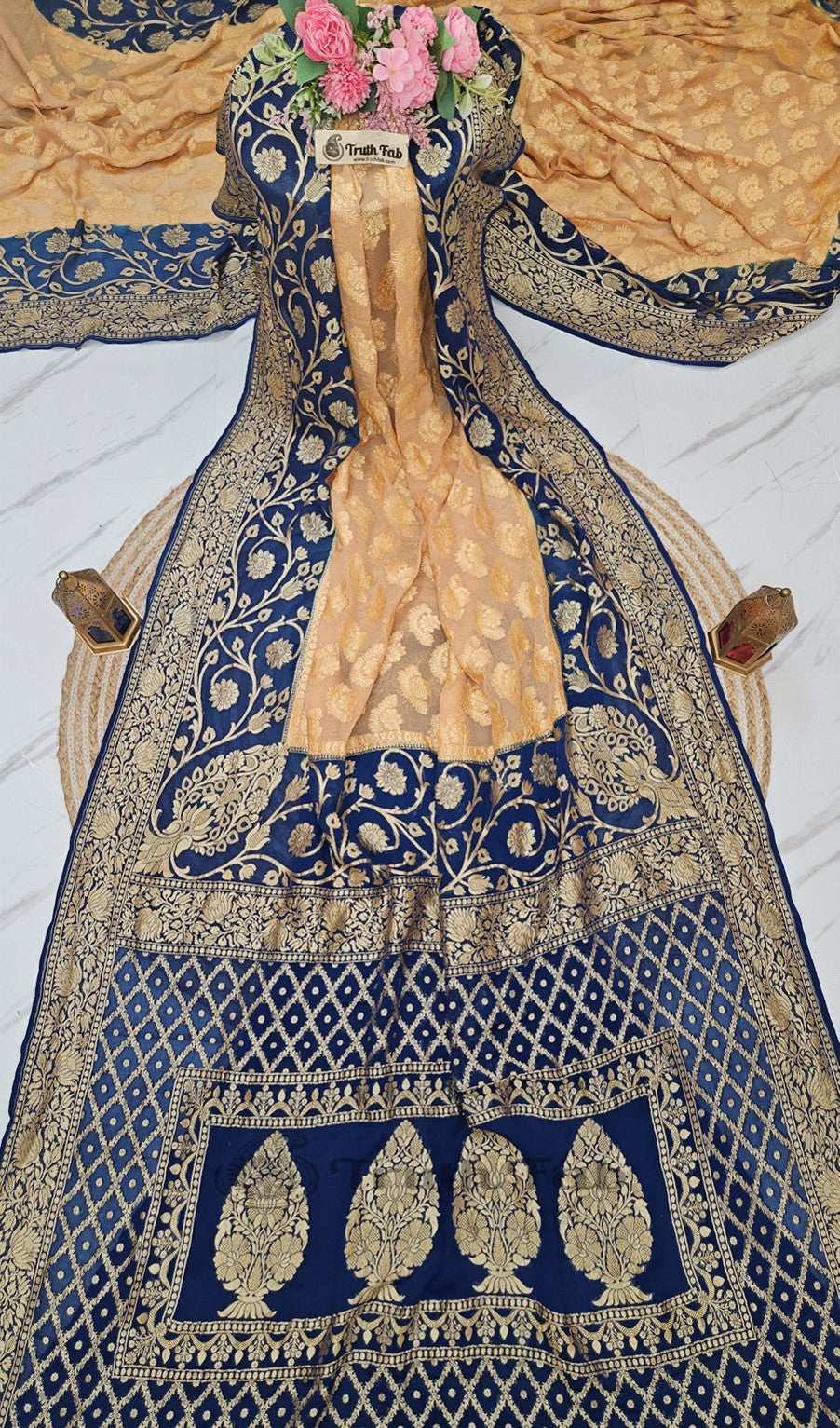 Design Detail: Pure Handloom chiffon Banarasi Saree Weaving a permanent handloom. The elaborate and laborious technique involves hand-weaving each separately. This takes longer on the handloom but creates a more robust pattern which stands on the fabric.